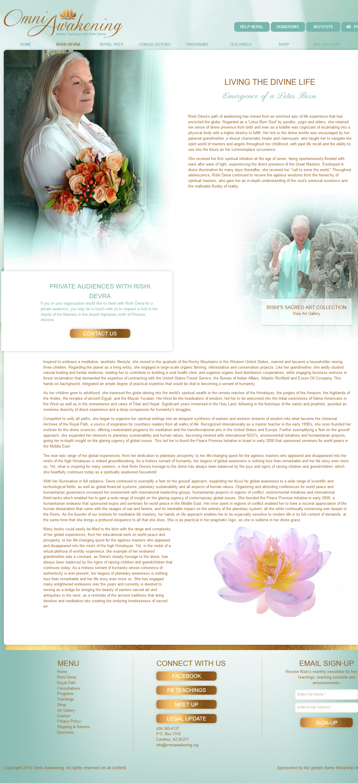 After issuing defamation proceedings against him in Montana that they gambled he could not afford to fight (since he had moved to the East coast of Canada in 2005) Devra West, Geoffrey Reynolds and their cult moves to Geoffrey Reynolds' old home town of Carefree AZ, where Devra West adopts the third identity in two decades after reincarnating herself as the Ascended Master Rishi Devra. Be sure to go to the ‘Surya Ma’ section of this website to review all the crimes she committed in Lakeside MT.